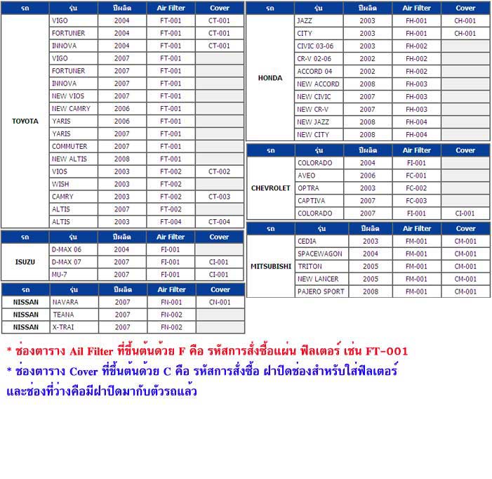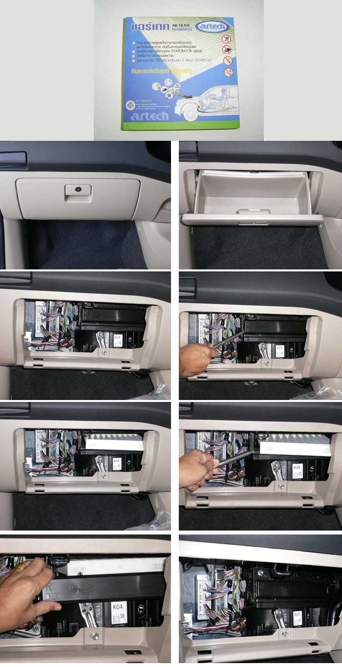 ภาพแสดงการติดตั้งแอร์ฟิลเตอร์ สำหรับรถยนต์รุ่นต่างๆ