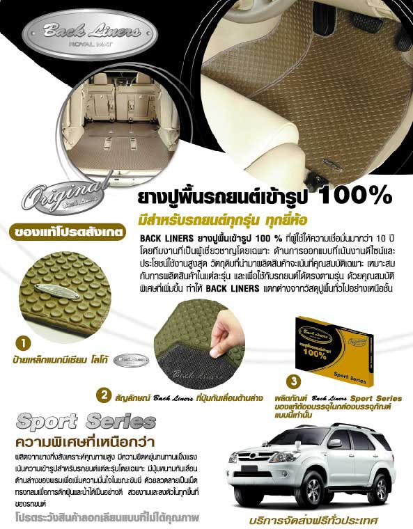 ** เพิ่ม option คือ ส่วนเพิ่มของพรมแนวตั้ง เช่น กระปุกเกียร์ , ขอบสันรอบรถ